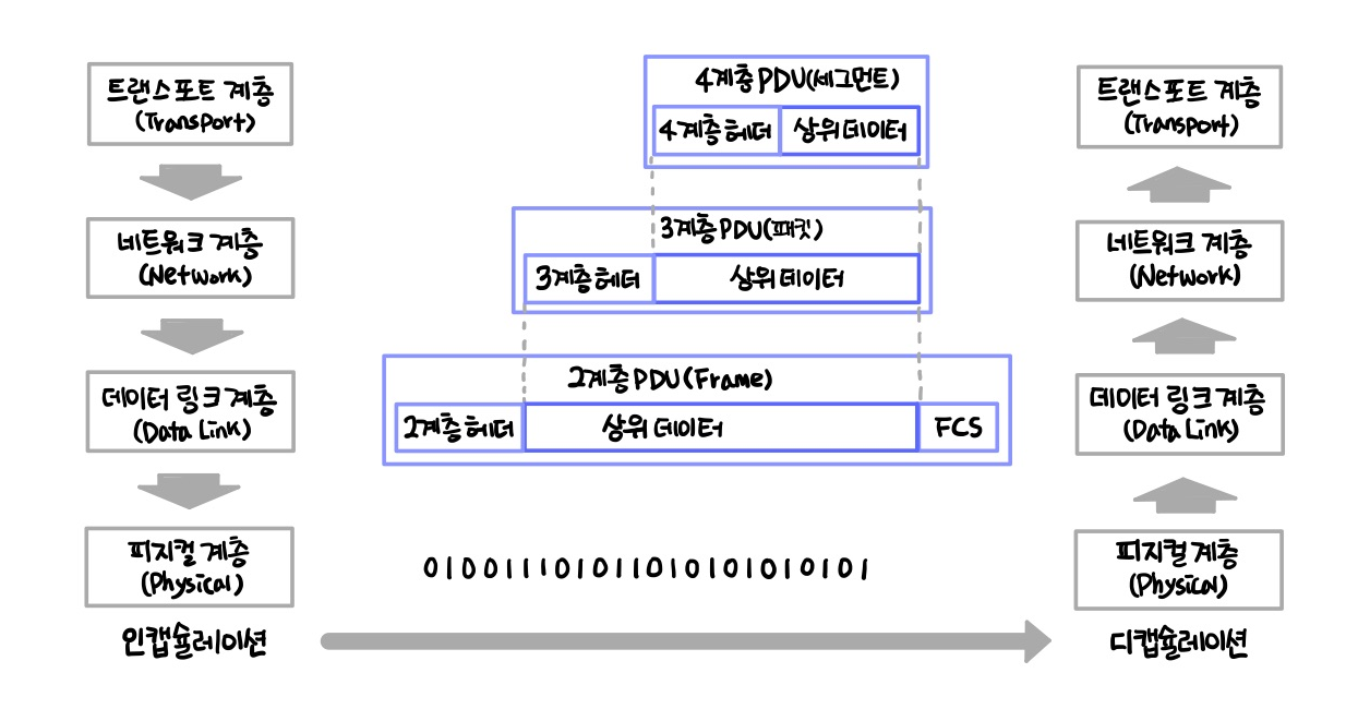 - 인캡슐레이션, 디캡슐레이션 과정을 통해 데이터가 전송되는 과정
