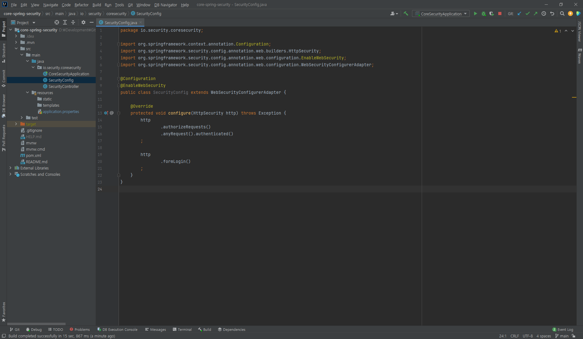 3. 사용자 정의 보안 설정 클래스 SecurityConfig 생성