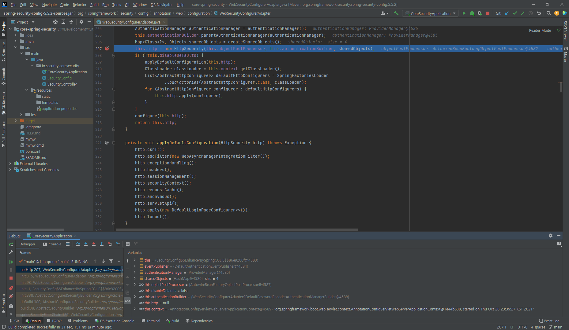 - 해당 클래스는 HttpSecurity를 생성함
