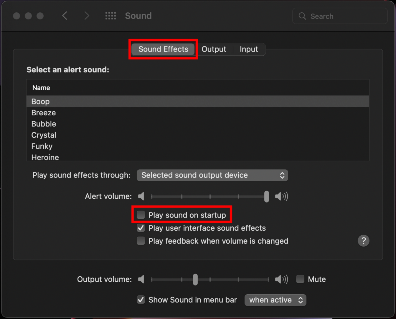 2. [Sound Effects] > [Boop] > Play sound on startup] 해제