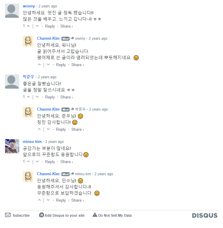 그때는 눈빛을 반짝이며 웃으면서, "네! 그것도 좋겠네요!"라고 말했던 것 같다. 내 주변 개발자 지인들은 깃허브 일일커밋이 무슨 의미가 있느냐고 평가절하하기도 한다. "그거 별로 안 중요해. 무엇을 커밋하는게 중요한 거지"라고 말하곤 한다. 매일 의미 있는 커밋을 했느냐고 누군가 묻는다면, 솔직하게 까놓고 말해서 부끄럽지만 나는 아니었다고 몇 번은 텍스트만 고친 적 있다고 대답한 적이 있다. 한창 의미 있는 커밋을 할 때는 프로젝트 단위로 올렸는데, README의 중요성을 알게 된 후에는 좀 더 신경 쓰게 된 것 같다.