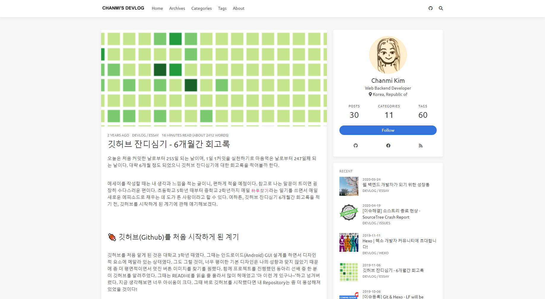 이 글은 2019년 11월 6일에 작성된 글입니다. 기존 URL은 https://chanmi-kim.github.io/Devlog/Essay/2019/11/06/Essay-Github-Grass-Plantation-A-Memoir-for-6-Month 이며, 현재 접속이 불가능합니다. 원글은 마크다운 문법으로 작성되었으며, 개명 이전에 작성한 글입니다. 참고 부탁드립니다.