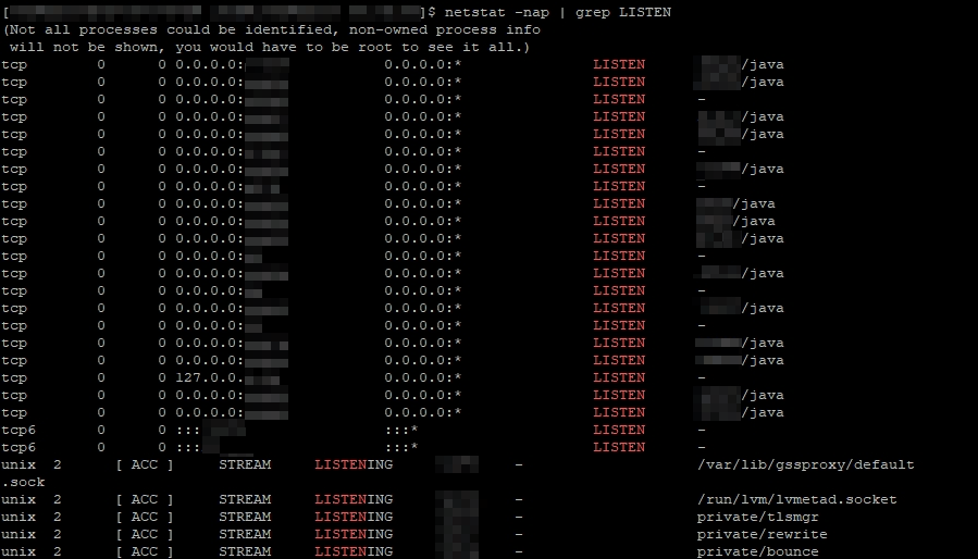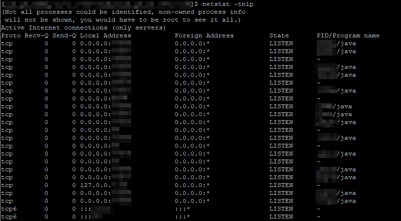 - 해당 결과가 있을 경우: 거의 다 가리긴 했지만, PID, 포트 등의 정보를 알 수 있습니다.