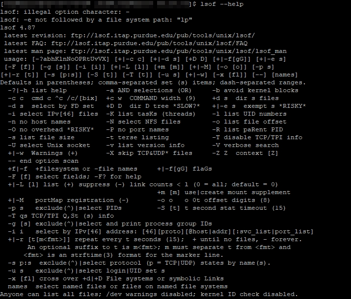 $ lsof --help