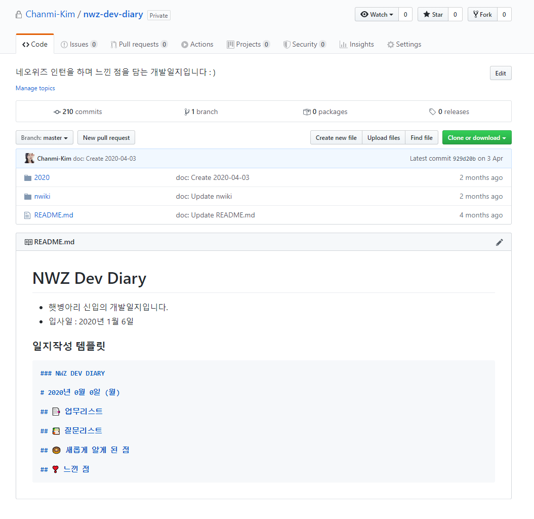 이 글은 2020년 5월 24일에 작성된 글입니다. 기존 URL은 https://chanmi-kim.github.io/Devlog/Essay/2020/05/24/2020-NWZ-Internship 이며, 현재 접속이 불가능합니다. 원글은 마크다운 문법으로 작성되었으며, 개명 이전에 작성한 글입니다. 참고 부탁드립니다.