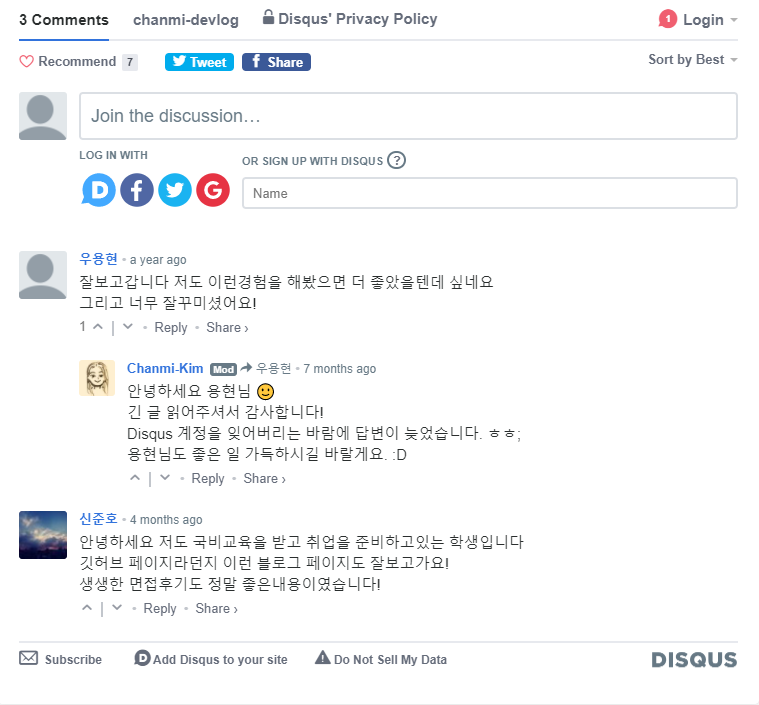 P.S. DISQUS 계정을 잊어버려서 대댓글을 못 달아드렸네요...ㅠㅠ 긴 글 읽어주셔서 감사합니다! :D